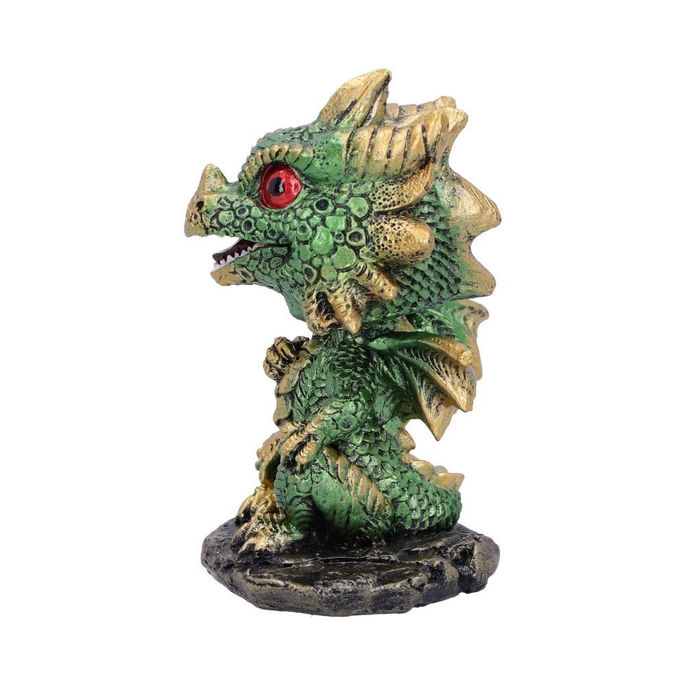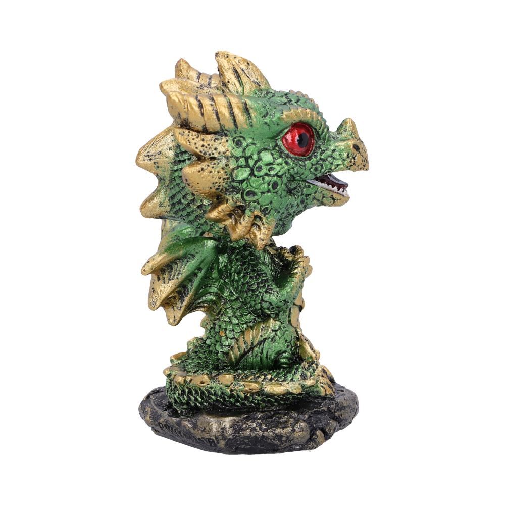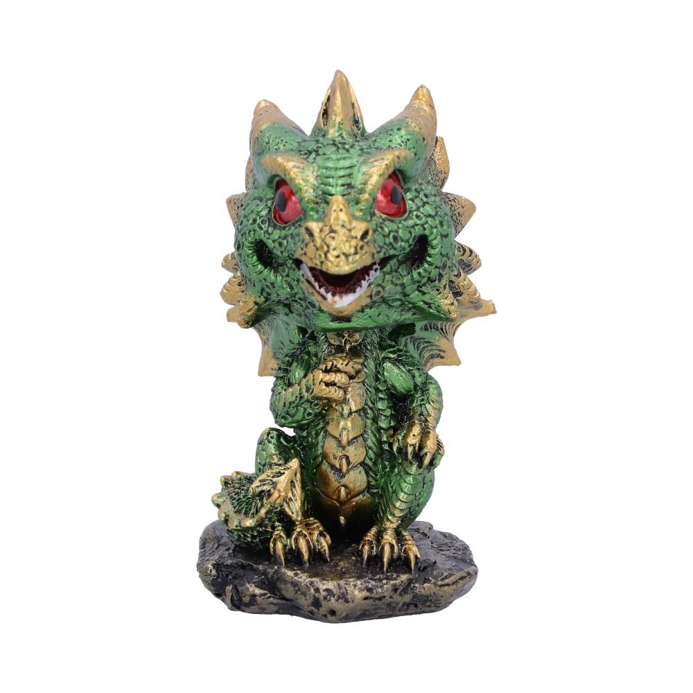 Green Bobling: Bring a little quirky joy into your life with our Bobble-head range. Our collection of Bobling’s have a personality as unique as the colour of their scales. This Green Bobling is perching on a rock with one hand on its knee and another pointing ahead, with its mouth gaping, it’s almost as if it’s laughing at you. The cheeky little dragon has green scales and golden accents on its horns, claws and chest. These Bobling’s would make a perfect addition to any dragon enthusiasts collection.