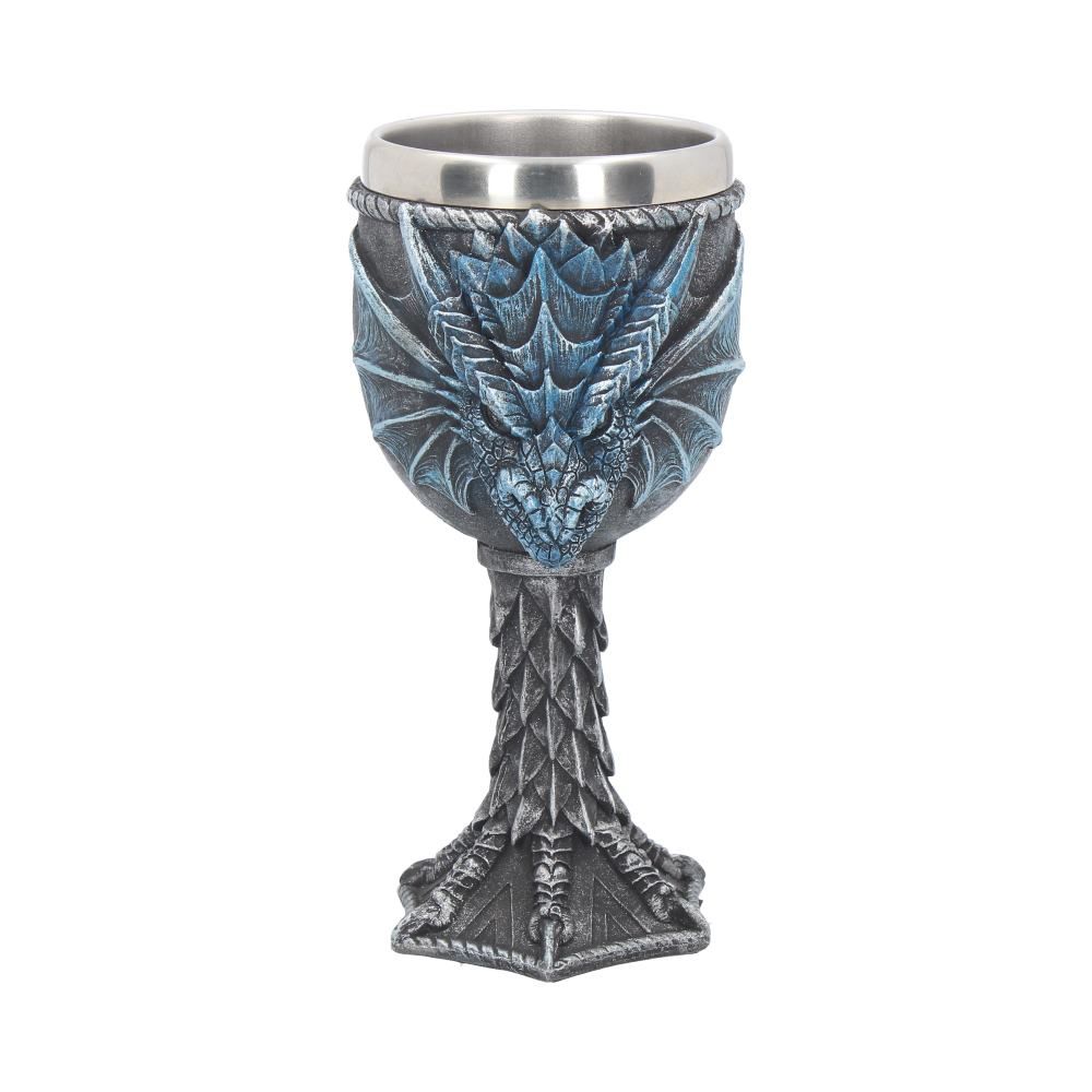 Drink to the Dragon with this unique Goblet from the mind of world-leading Gothic artist, Anne Stokes! now available from the Giftware Collection of Infinitum, a sapphire Dragons head adorns each side of the Goblet, surrounded by a pewter-like finish. Dragon scales adorn the thick stem, transforming into reptilian claws at the hexagonal base. Cast in the finest resin before being painstakingly hand-painted, it is perfect for any Fantasy fan.