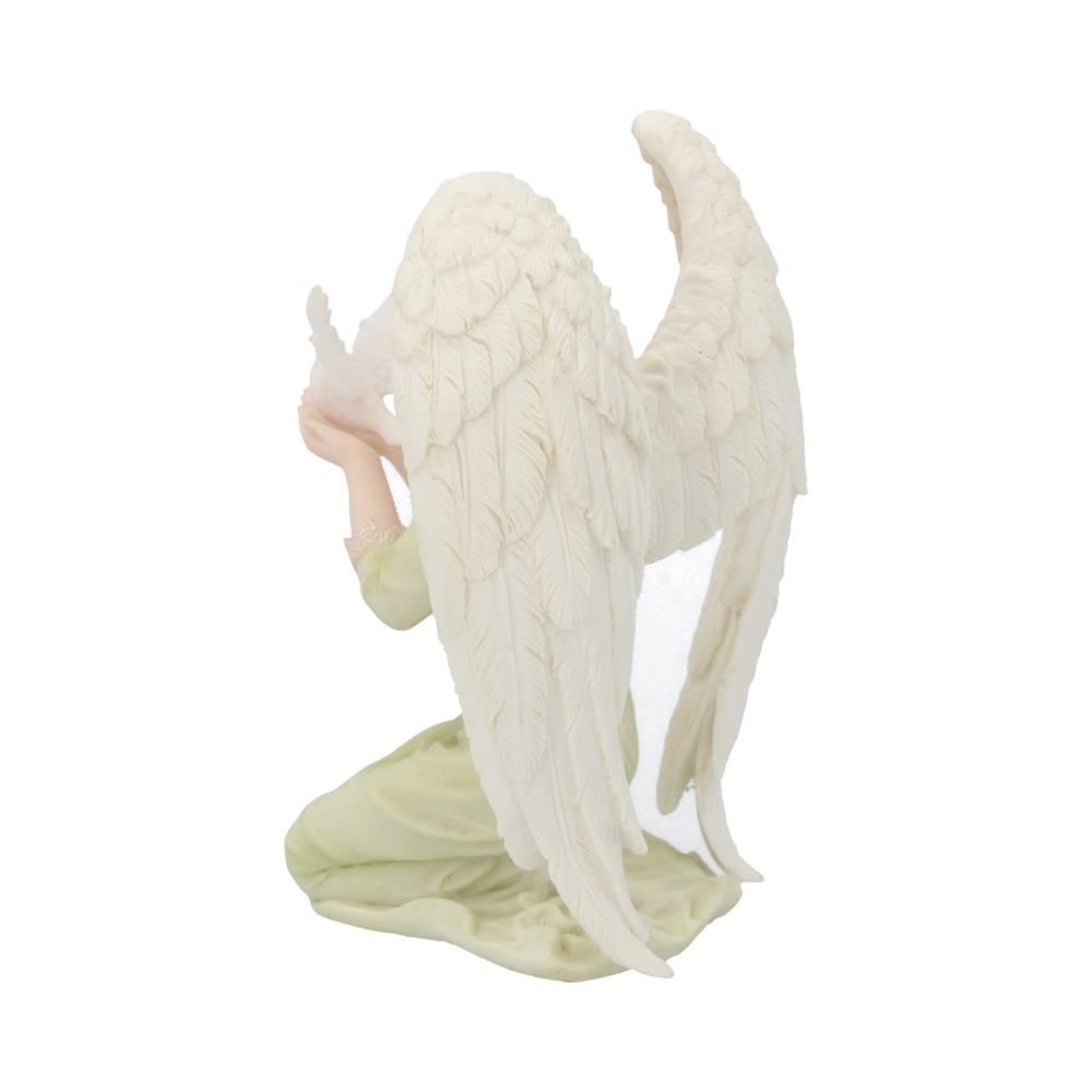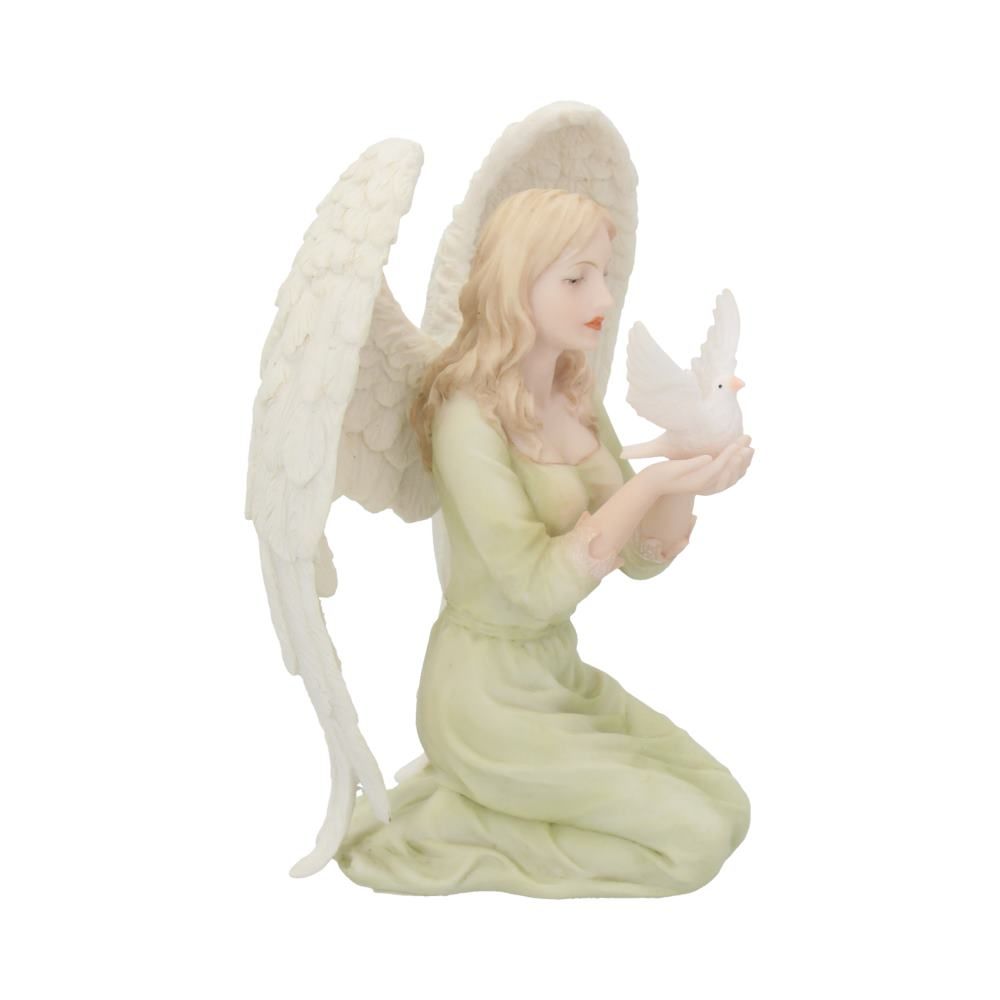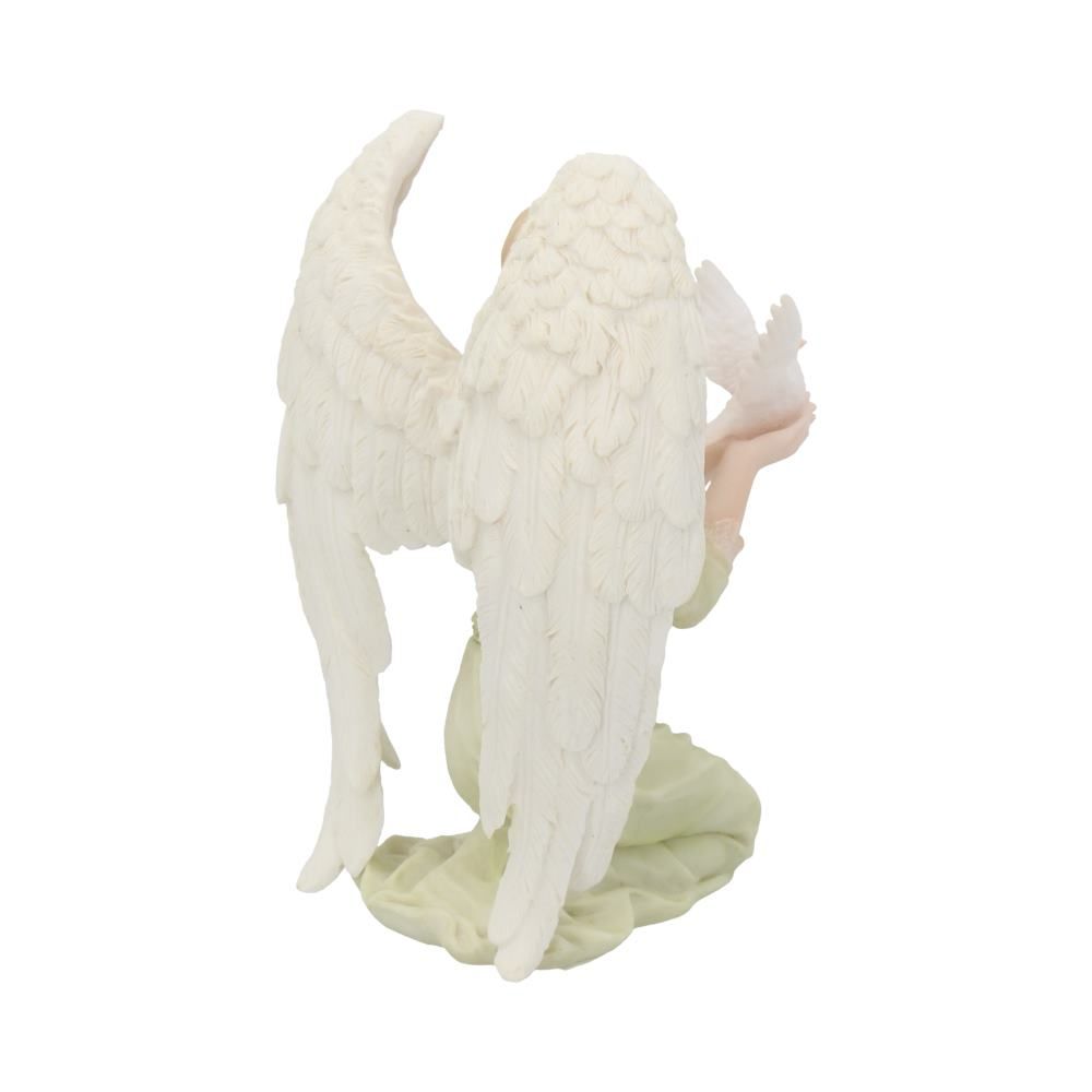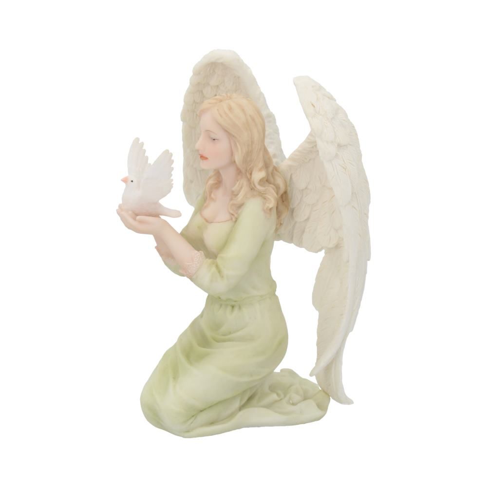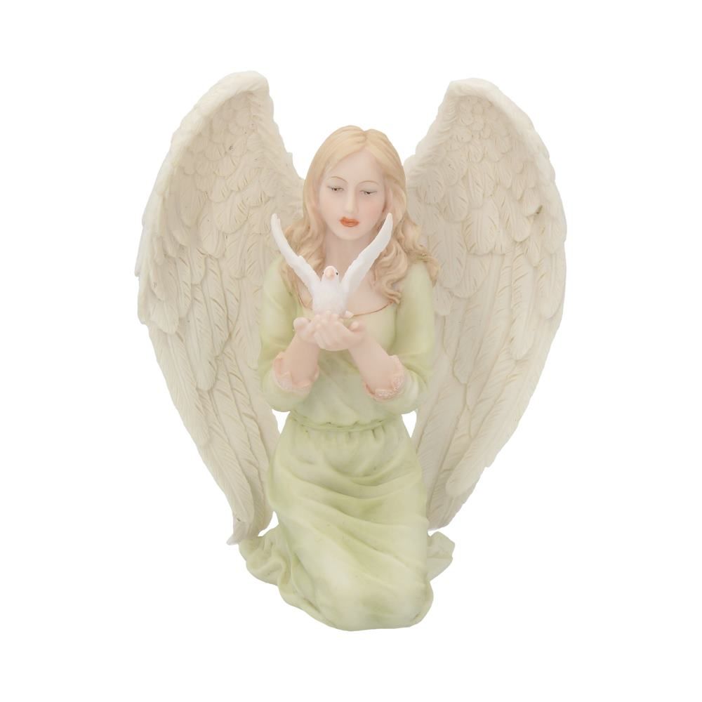 Available as a part of Infinitum’s Premium high-quality selection, this enchanting Angel is cast in top quality resin before being lovingly hand-painted. Kneeling on the ground, this blonde angel cradles a white dove in her hands, helping it to take flight. Her dress is a muted lime green and perfectly compliments the feathery wings which emerge from her back. Peaceful and elegant, this piece would make the perfect gift for someone who portrays kindness and grace.