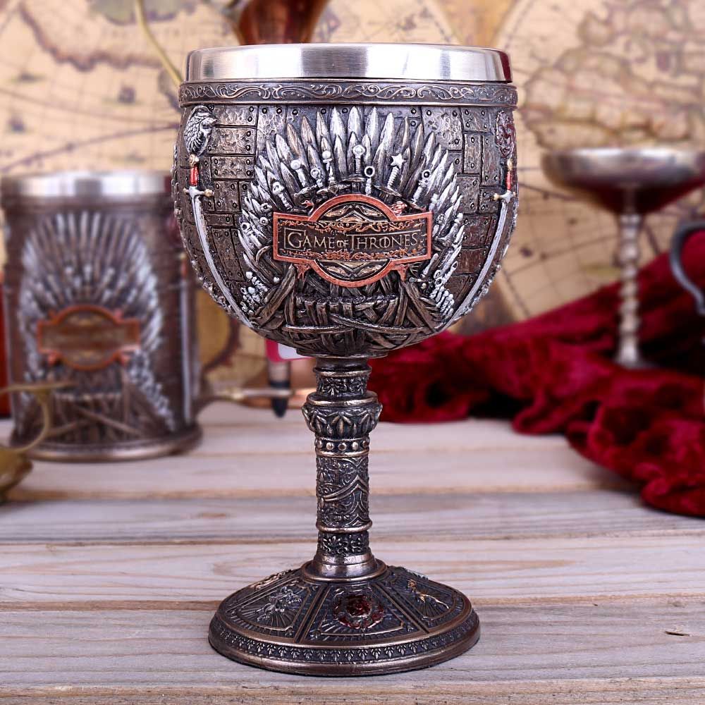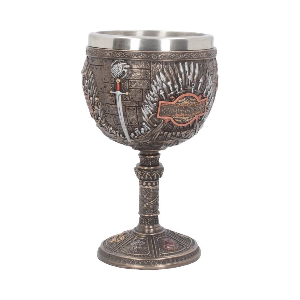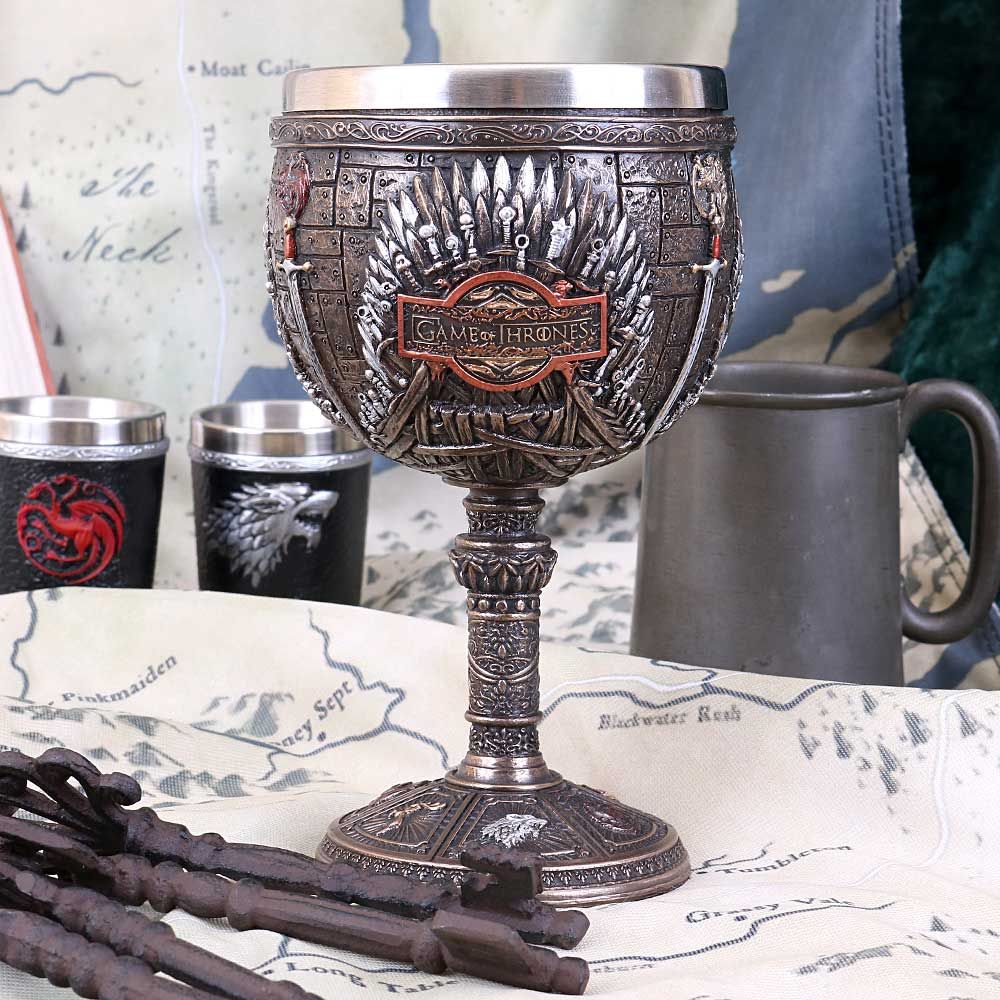 In the Game of Thrones, you either drink to victory or you don’t live long enough to pour. Exclusive to Infinitum, this officially licensed Goblet is cast in the highest quality resin before being painstakingly hand-painted. The base of the Goblet is covered in the House Sigils from the most prestigious families in Westeros. Each side bears a fantastically detailed raised picture of the Iron Throne, with the Game of Thrones logo in the centre. These are separated from each other by unsheathed swords pointing downwards. With a removable stainless-steel insert for ease of cleaning, this Goblet is fit for any claimant to the throne of Westeros.