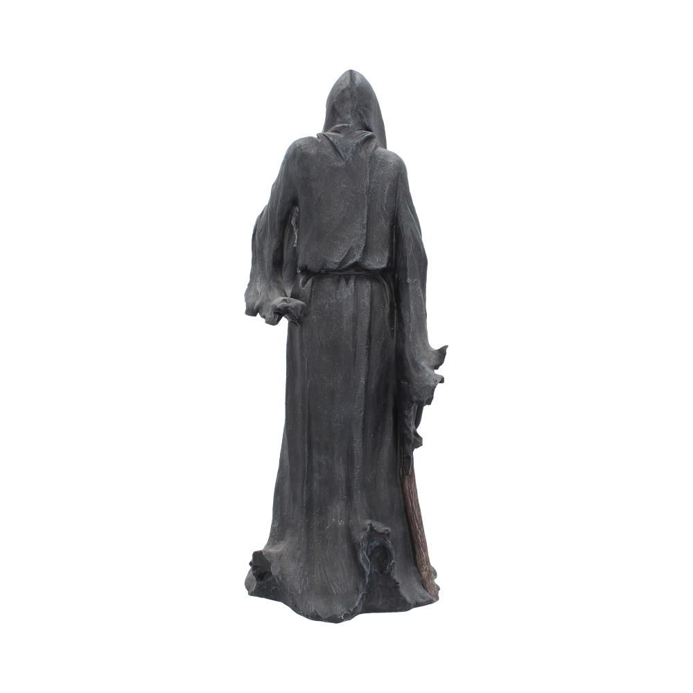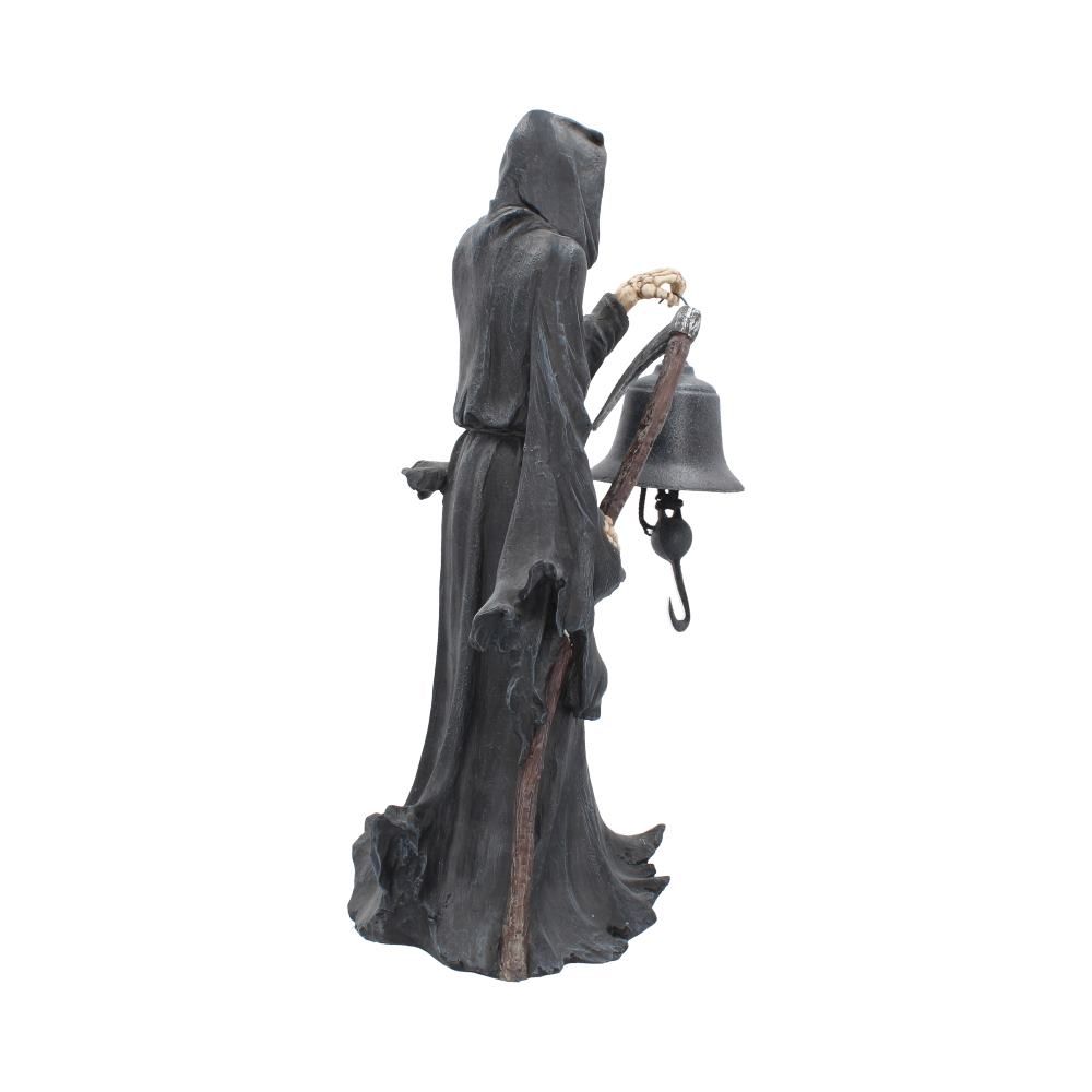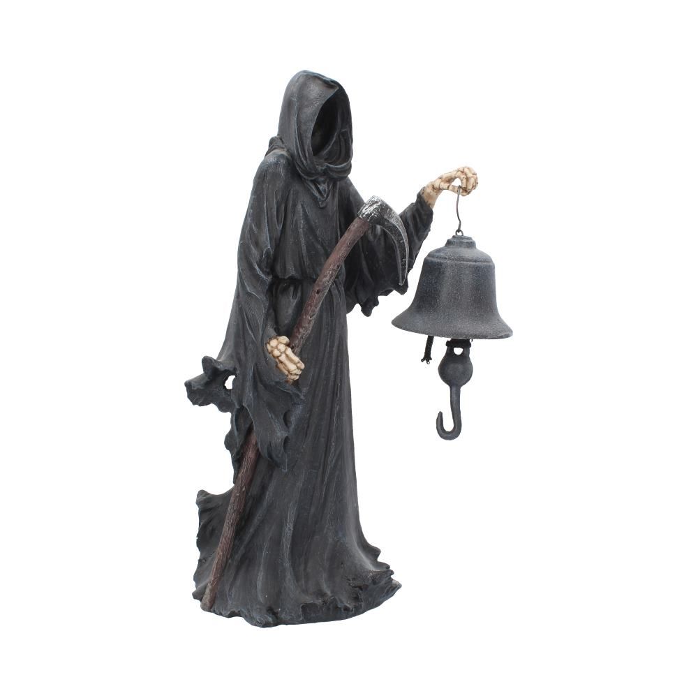 Standing tall, this dark Reaper towers over his subjects. His black cloak drapes down, hiding his skeletal face, giving this figure a sinister aura. Holding a scythe in his right hand and a large bell in his left, this Reaper shows that no one can escape the bells final toll. Cast in the finest resin before being hand-painted, this piece would make a welcome addition to any Gothic home.